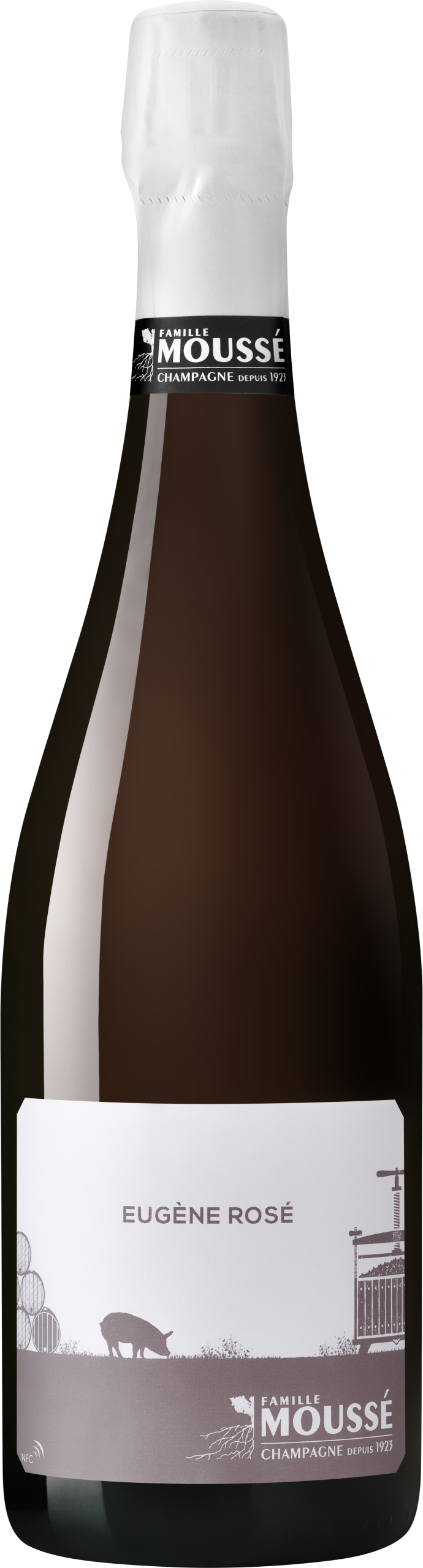 Eugène reflète la mosaïque des terroirs du Champagne Famille Moussé. Raisins issus d’une viticulture propre dans le respect du vivant sur les villages de Cuisles, Jonquery, Châtillon sur Marne et Vandière. Blanc de Noirs (80% Meunier, 20% Pinot Noir). Assemblage provenant d’une réserve perpétuelle démarrant en 2003 finissant en 2020 (50%). Cette solera apporte aux jeunes vins plus d’épaisseur gage de complexité, profondeur et patine en bouche. Eugène se distingue par une bulle fine et légère. Fruit, fraîcheur, puissance, générosité et longueur sont les maîtres mots qui qualifient cette cuvée. Un champagne de précision doté d’une buvabilité certaine. Dosage : 2.5 g/l (Extra brut)