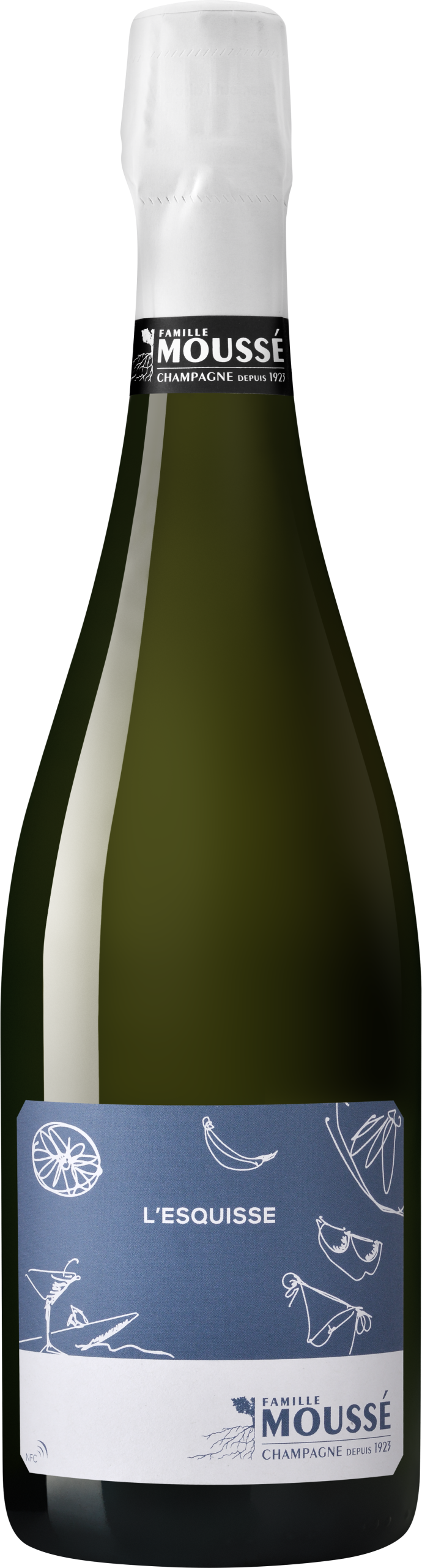 L'Esquisse a pour objectif de réunir les nouvelles et les jeunes parcelles du Champagne Moussé. Pensée pour être sur le fruit et dégustée jeune, cette cuvée a une proportion importante de tailles qui lui donne une grande buvabilité. Raisins issus d’une viticulture propre dans le respect du vivant sur les villages de Cuisles, Jonquery et Châtillon-sur-Marne. 90% des sols sont composés d'argiles vertes de marne calcaire. Assemblage de 70% Meunier et 30% Pinot Noir, 70% base 2021 et 30% 2020. Les vendanges sont réalisées à la main dans des caisses de maraîchage de 15 kg pour préserver au maximum l’intégrité des grappes et limiter l'auto pressurage. La fermentation malolactique est réalisée et les bouteilles ont un vieillissement de 18 mois. Ce vin est pensé pour être dégusté jeune, avec une grande buvabilité. Pour sa nouvelle cuvée L’Esquisse, Cédric Moussé vous propose de la déguster en bonne compagnie lors d’un apéritif estival composé d'amandes, de fruits secs ou de pastèque. Dosage : 2 g/l (extra brut)